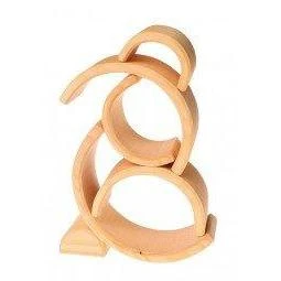 This Rainbow tunnel is really versatile! Children can stack and sort or they will use it as a cradle for dolls, as fence for animals, like a tunnel or bridge for vehicles, as a house for dwarfs and dollhouse dolls and build amazing sculptures… this rainbow will always be integrated in playing with a lot of fantasy.