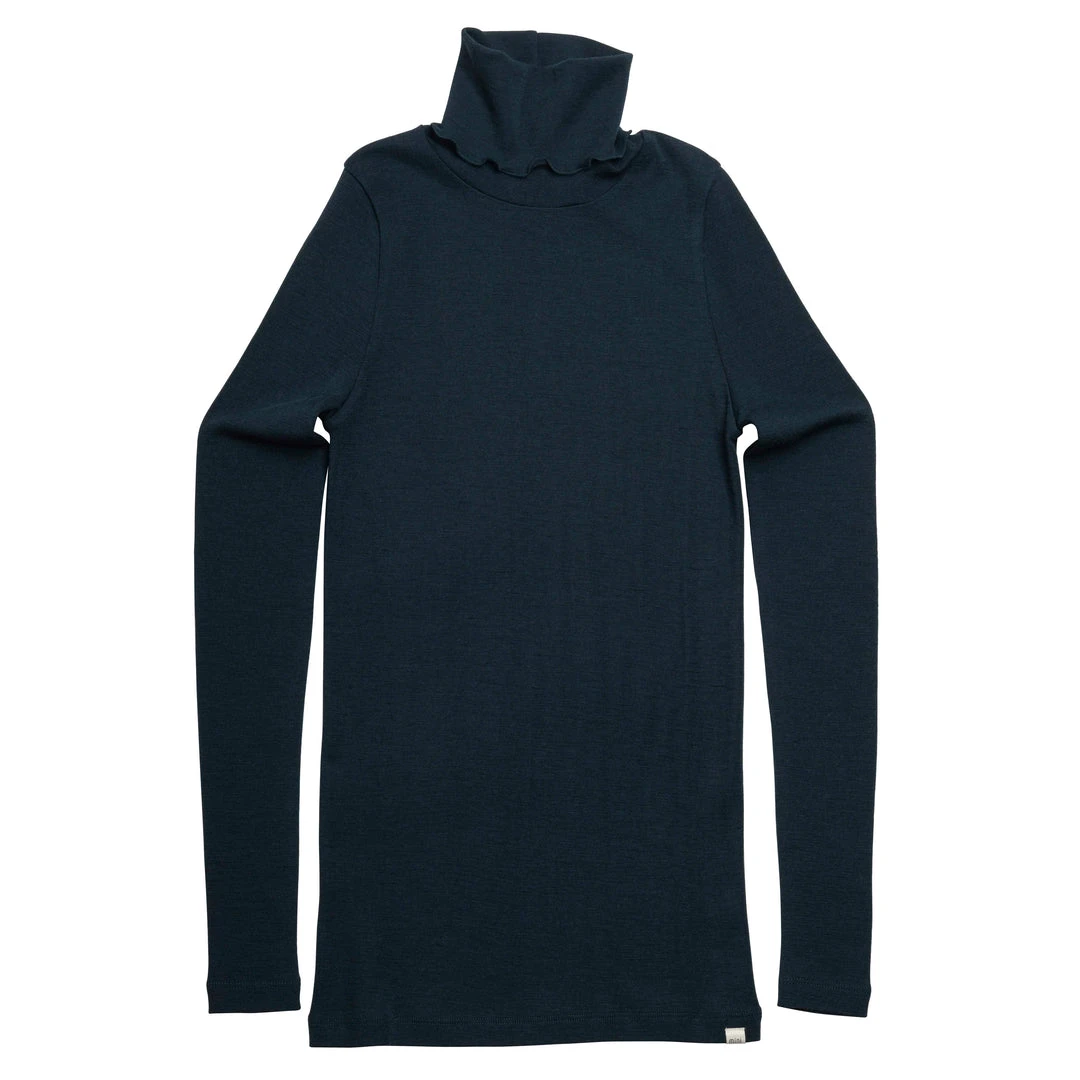 A classic turtleneck blouse made with high quality seamless merino wool. The simple design makes it versatile for a range of occasions. The wool is treated with positive ions, making it machine washable.Â
