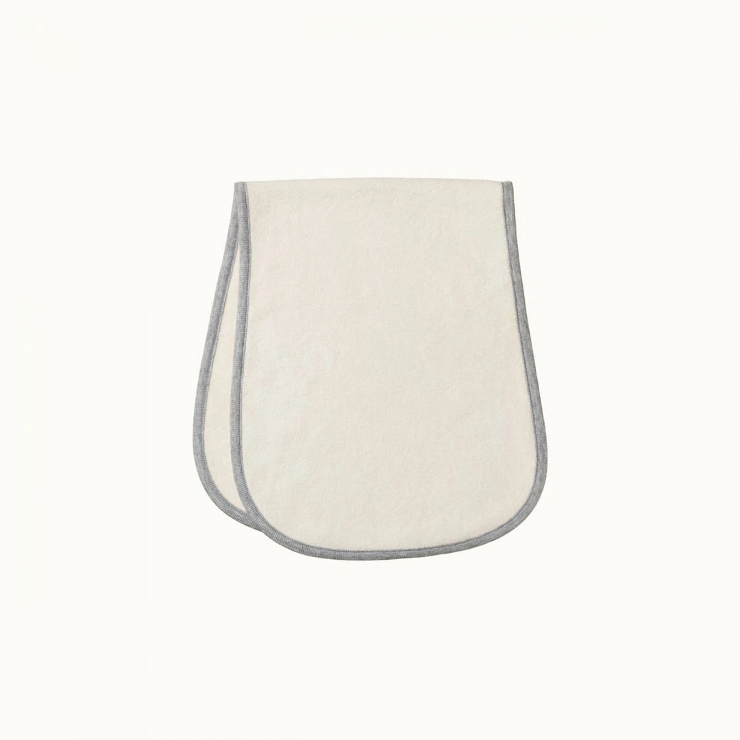 This Burp Cloth curves into the shape of your neck and generously covers your shoulder, chest and back catching all those little spills. Made from luxuriously fluffy organic towelling with a hint of stretch, and a contrasting trim.