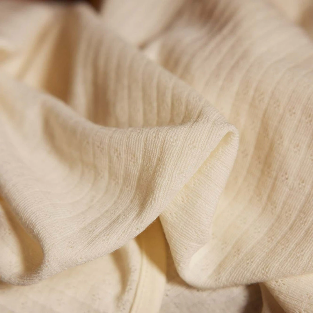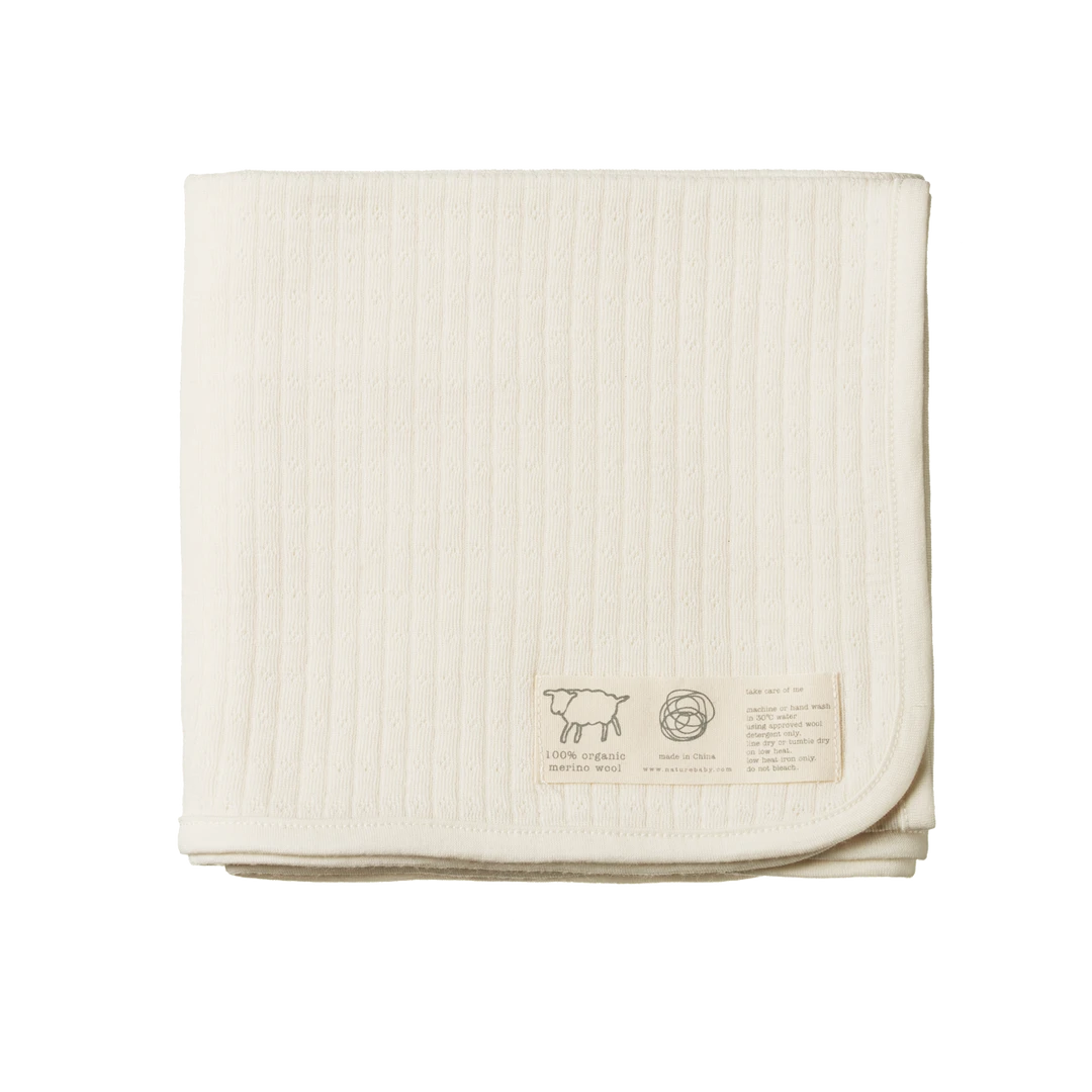 Keep baby snug with this pure merino wool pointelle wrap which is exceptionally silky soft and breathable. Generously sized, and perfect for swaddling, or to use as an extra blanket in cooler weather.