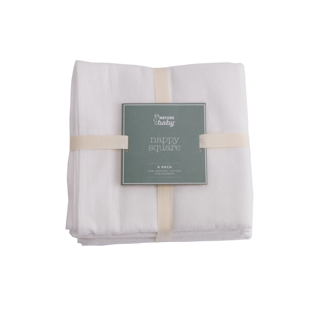 These brushed cotton nappy squares are made from organic cotton and bamboo, offering comfort, breathability, absorbency and softness against baby’s skin.