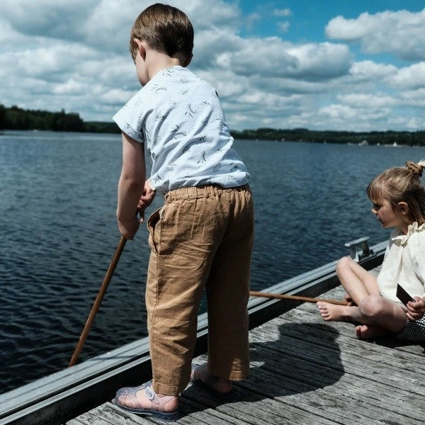 Made from 52% Linen and 48% organic cotton, these unisex pants have a comfortable fitting elastic waist and deep inner pockets.