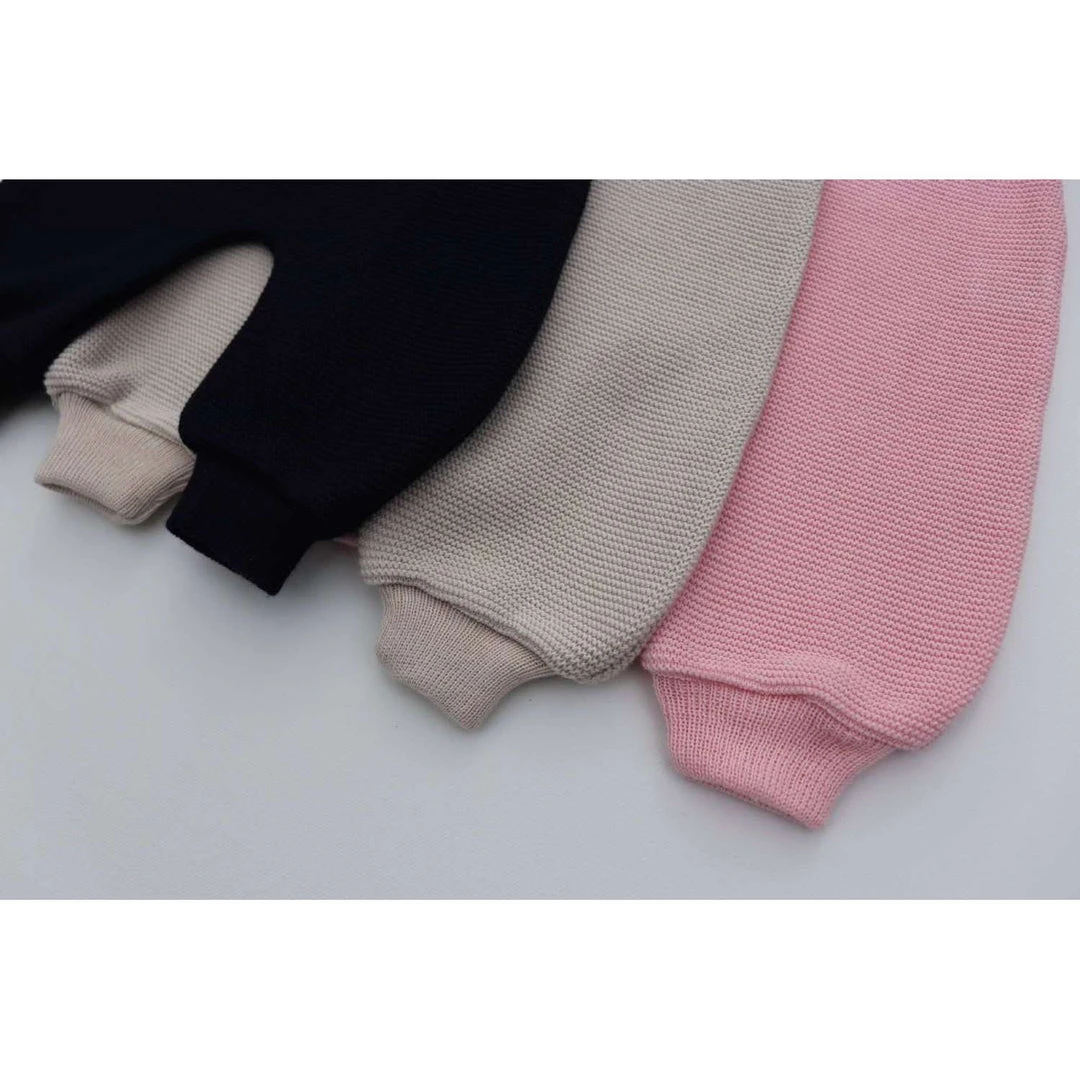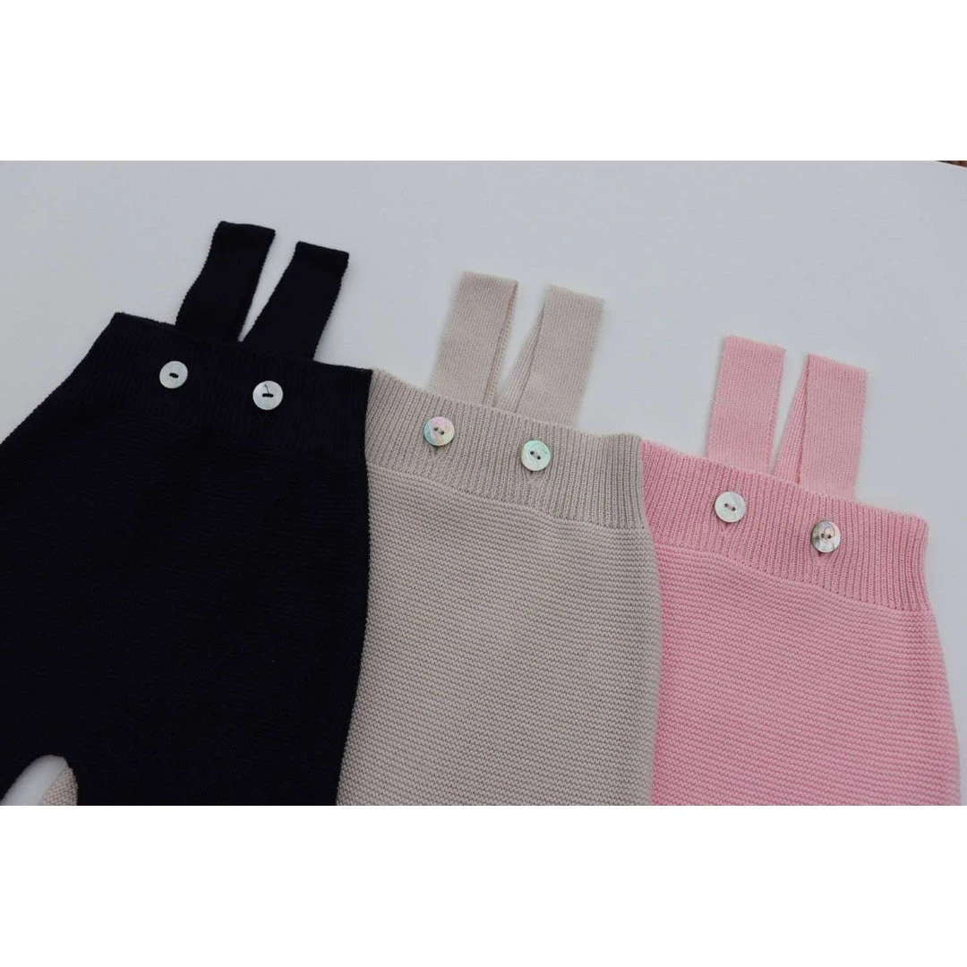 Classic Knitted Baby Dungarees! Made from 100% Organic Cotton with 2 seashell buttons on the straps. Both the waistband and cuffs are very wide and stretchy. These can be dressed up or down and layered up or down for use in all seasons. The knitted cotton will stretch and accomodate babies of different shapes and cloth or paper nappies. These are a very versatile and comfortable item!