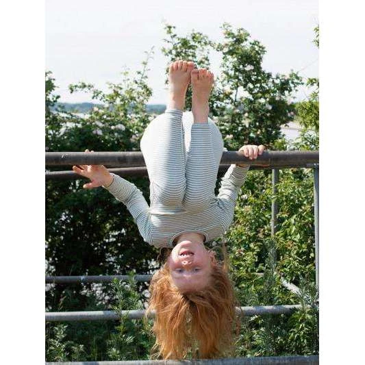 Serendipity Organics Organic Cotton Child Leggings – Lake/Off White Stripe Leggings & Pants