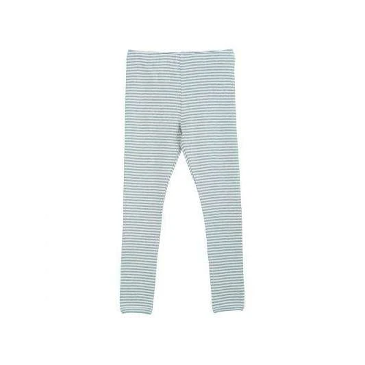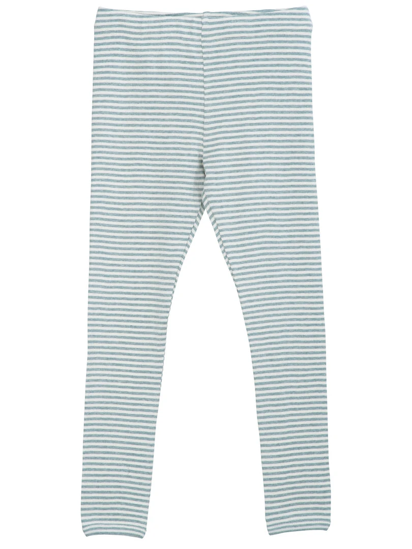 Super soft organic cotton leggings in a unisex lake and off white stripe.